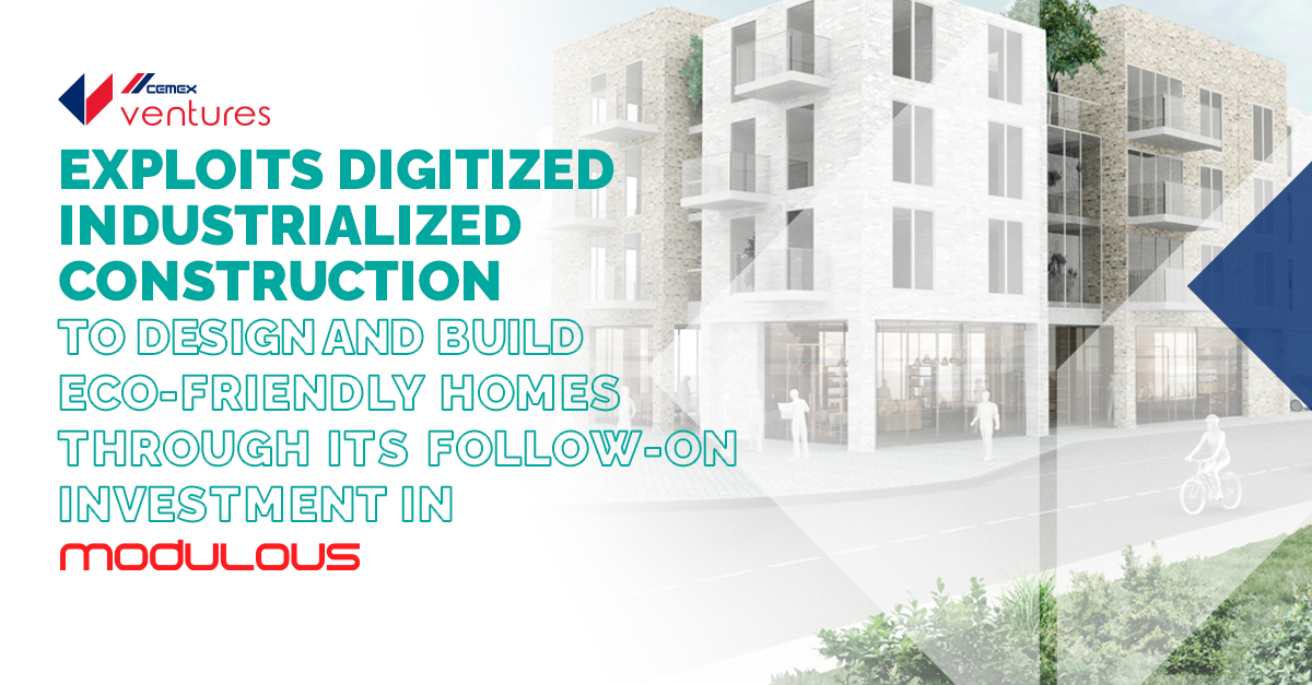 JUNE 22, 2021. MONTERREY, MEXICO— CEMEX Ventures, the corporate venture capital and open innovation unit of CEMEX, announced today that they increased their participation in Modulous, a UK based company that exploits technology in a bid to modernise the design and construction of affordable housing, making the process more efficient, scalable, and relying on a strong network of supply chain partners.